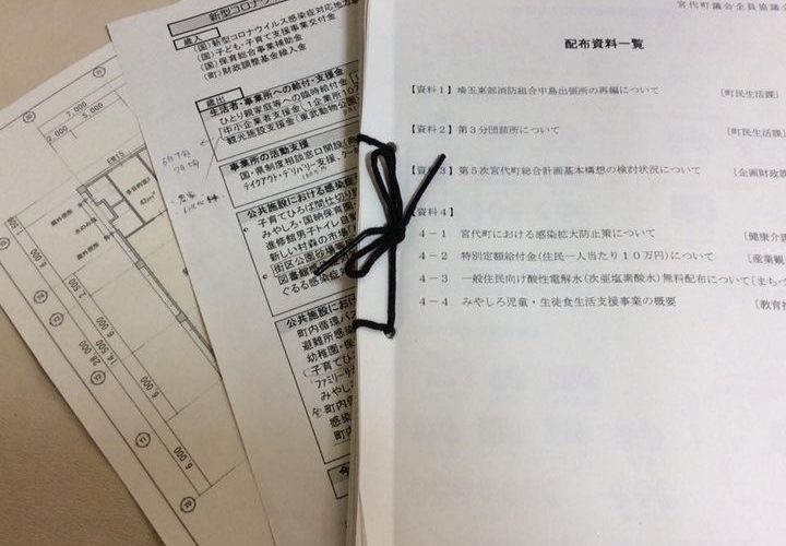 5月21日 宮代町議会全員協議会、22日 会派別説明会で、6月議会の議案、新型コロナ対策支 …