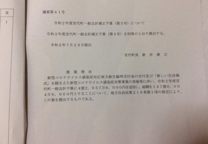7月29日に臨時定例会議がありました。 国からの、新型コロナ対策支援予算を宮代町は何に使う …